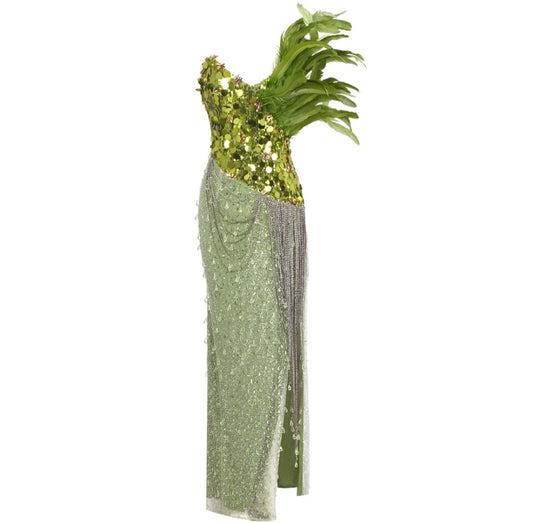 Elegant One-Shoulder Bodycon Dress W/Rhinestone Straps