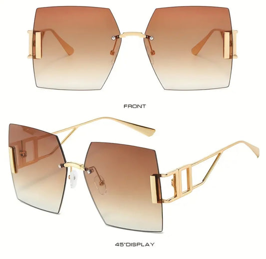 Large Square Frame Metal Rimless Glasses