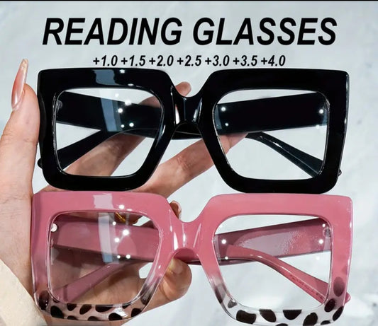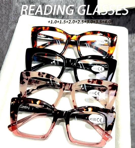 Oversized Retro-Style Square Reading Glasses with Magnification of +1.0 to +4.0