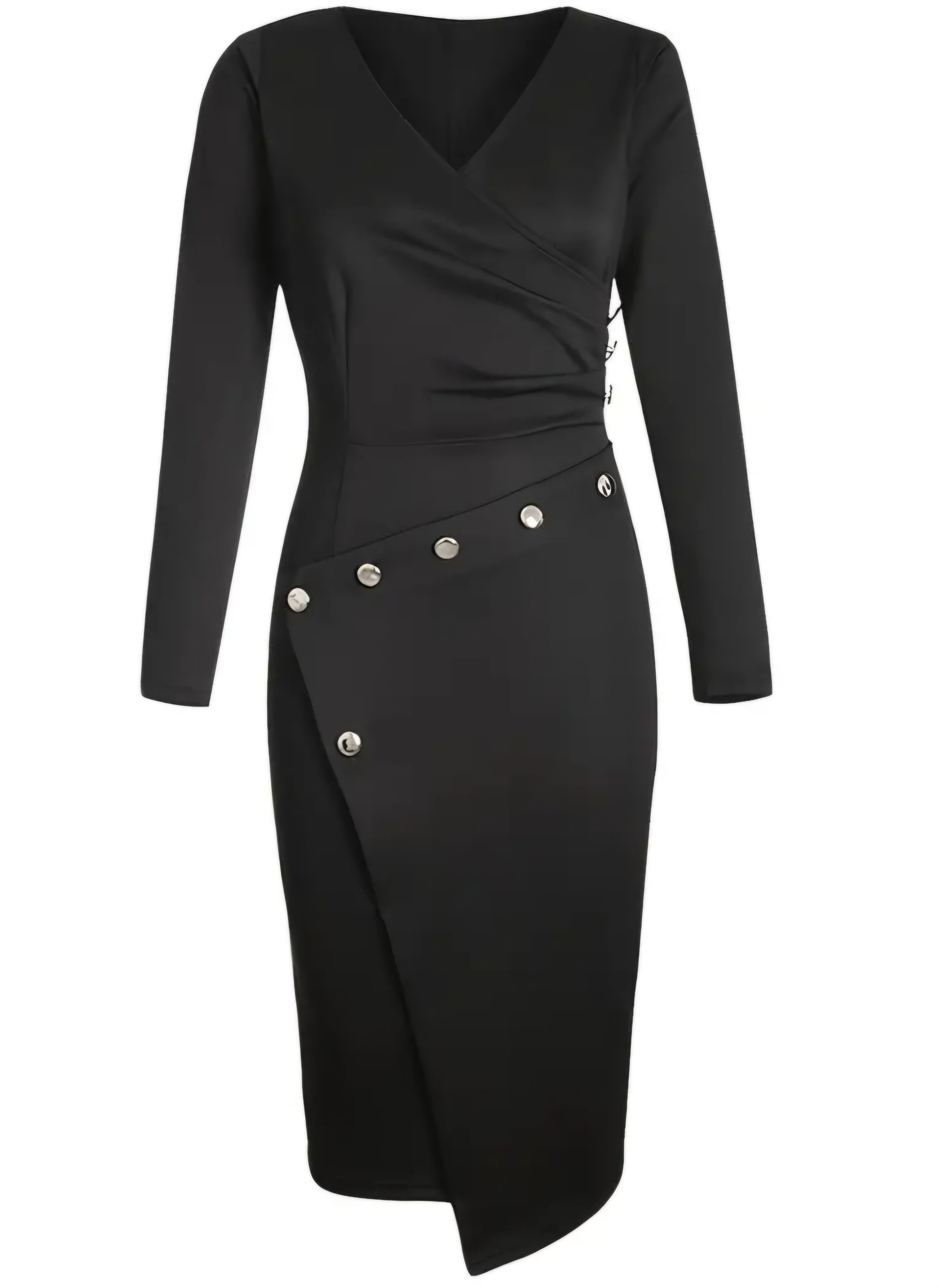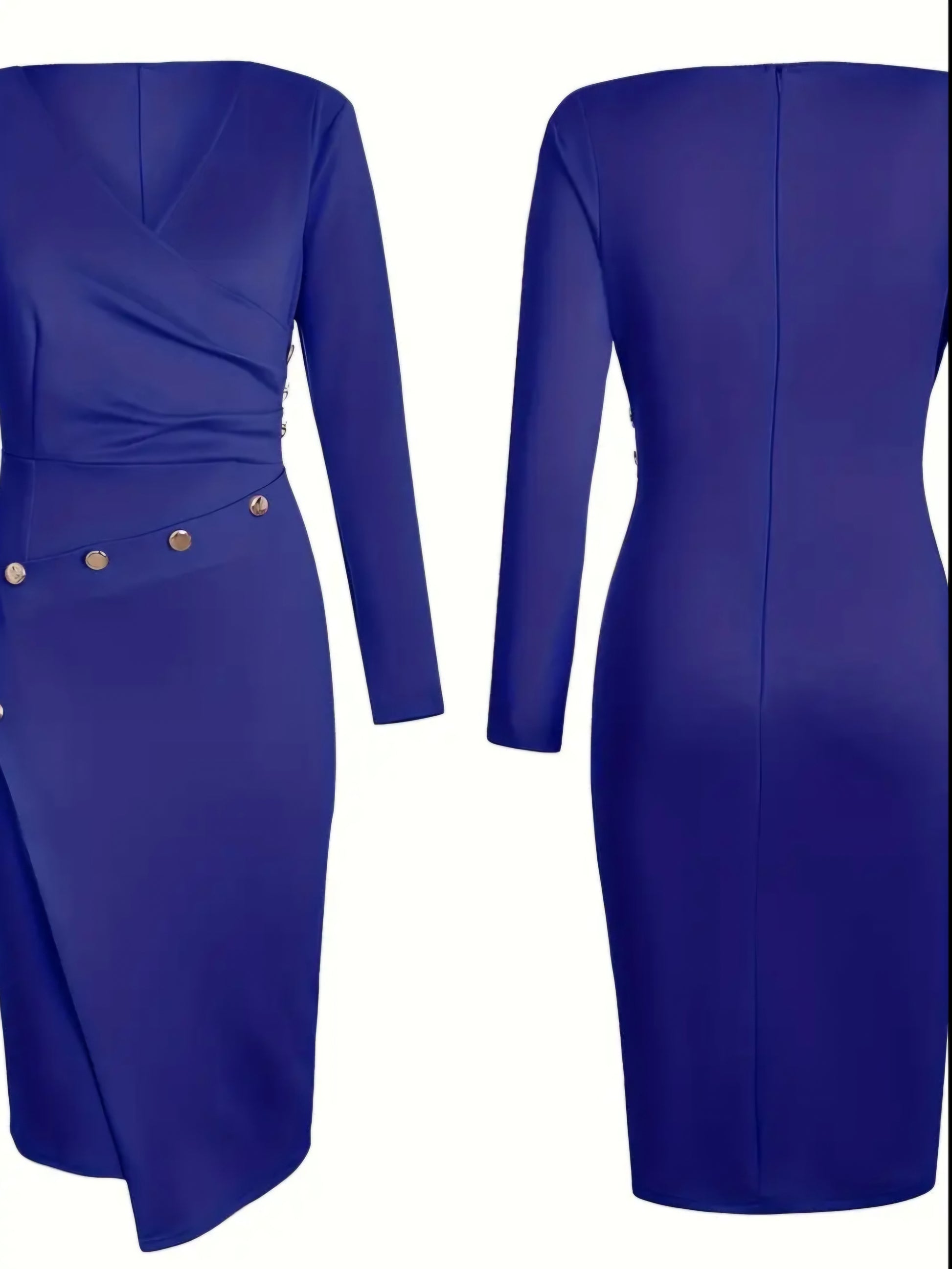 Our long-sleeve deep v-neck bodycon pencil midi dress is an elegant fashion dress. Features an eloquent design, comfortable fit, and durable material.
