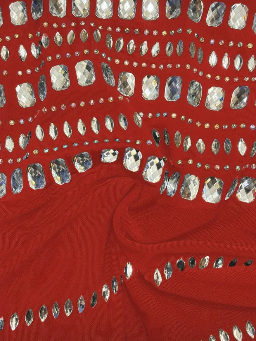 Our Elegant Rhinestone-Embellished Sleeveless Mermaid Dress is a floor-length dress good for parties, weddings, and proms.